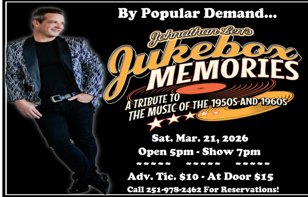 NOTE: Some dates are booked to private events…call 251-978-2462 for info. & Tickets.